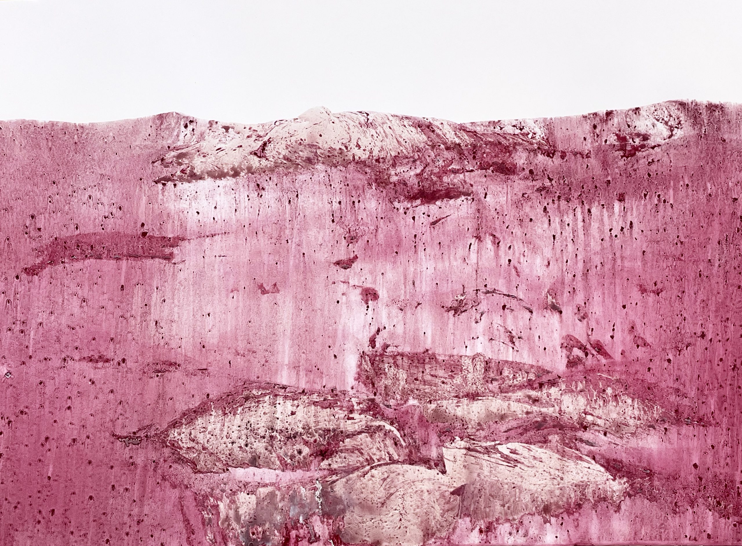 Peinture acrylique et pigments sur papier aquarelle Fabriano, 300g/m2. Avec passe-partout blanc, 1,5mm d’épaisseur, cadre bois 60x80cm.