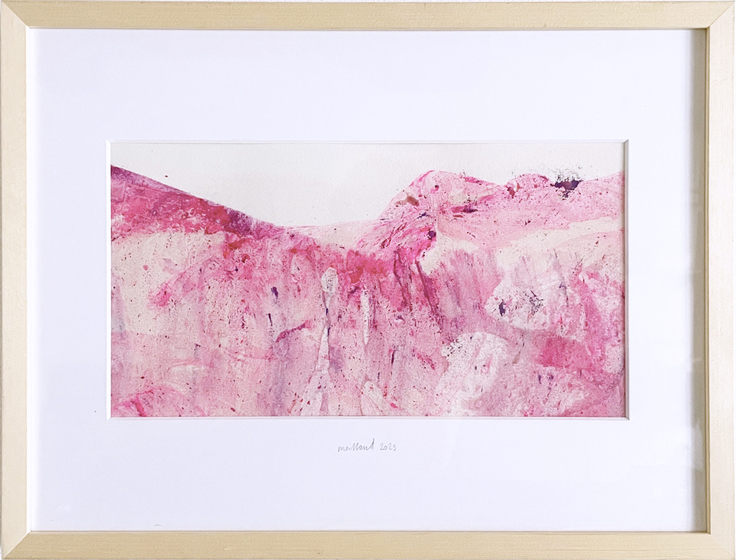 Peinture acrylique et pigments sur papier aquarelle Arches, 300g/m2. Avec passe-partout blanc, 1,5mm d’épaisseur, cadre bois 30x40cm.
