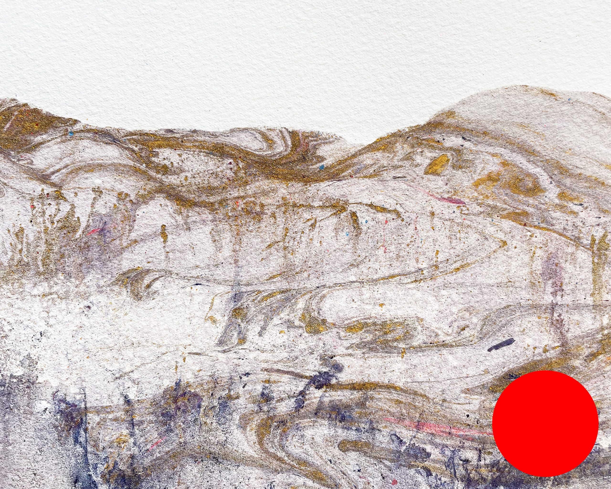Encre et pigments sur papier aquarelle Arches, 300g/m2. Avec passe-partout blanc, 1,5mm d’épaisseur, cadre en métal noir brillant, 24x30cm.