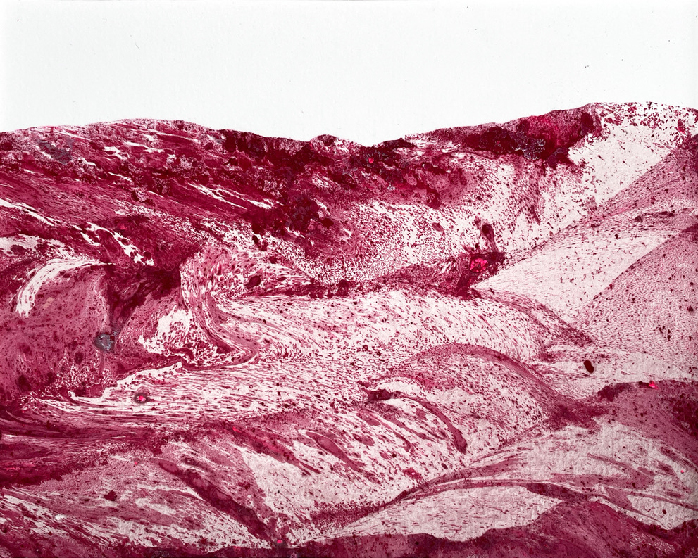 Peinture acrylique et pigments sur papier aquarelle Fabriano, 300g/m2. Avec passe-partout blanc, 1,5mm d’épaisseur, cadre bois 24x30cm.